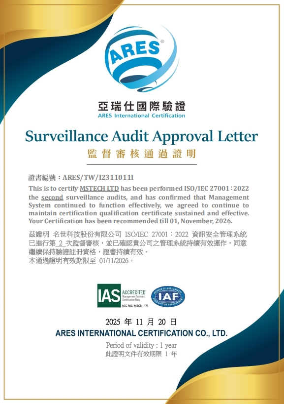 喜報|名世連續兩年通過 ISO/IEC 27001:2022 資安監督審核!